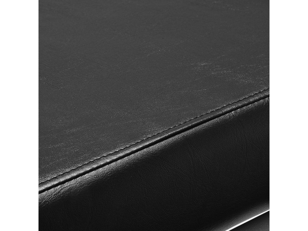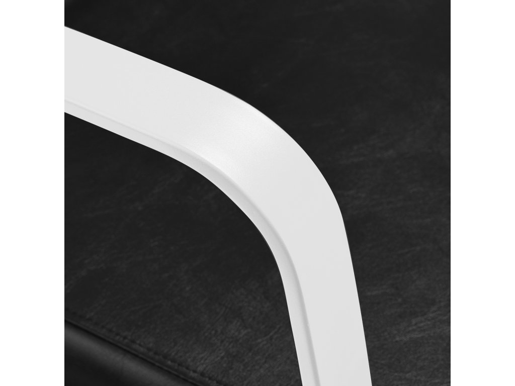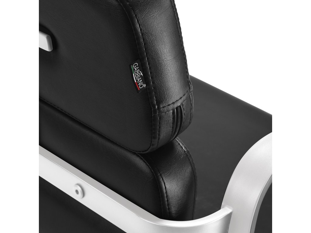 Čalúnenie v čiernej farbe je vyrobené z kvalitnej syntetickej kože, ktorá je príjemná na dotyk, odolná voči vlhkosti a veľmi ľahko sa udržiava. Pevná penová výplň garantuje dlhodobý komfort a tvarovú stálosť. Kovové podrúčky v bielej farbe spolu so samostatnou podnožkou zvyšujú pohodlie klienta a podporujú správne držanie tela.