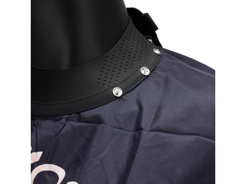 Výrobok je vyrobený z čierneho nepremokavého materiálu, ktorý umožňuje jednoduché čistenie a dostatočne chráni pred všetkými druhmi postriekania. Vďaka univerzálnej veľkosti a možnosti nastavenia vďaka patentkám na krku poslúži každému klientovi bez ohľadu na jeho výšku a zabezpečí pohodlie počas vykonávaného ošetrenia.