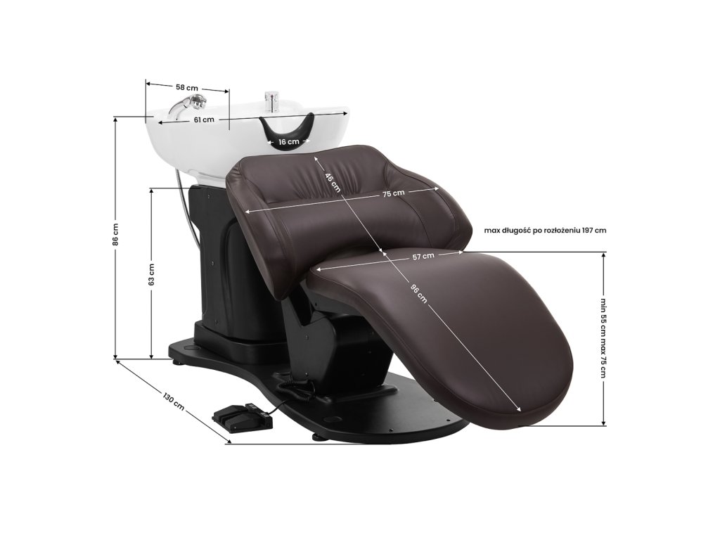 Kadernícky umývací box Gabbiano TRYCHO bol navrhnutý na vykonávanie časovo náročných úprav účesu alebo farbenia a poskytuje klientovi pohodlnú polohu pri dlhších úpravách. Správne profilované kreslo vyplnené odolnou penou zaisťuje vysoký komfort používania a čalúnené opierky rúk umožňujú správne polohovanie ramien klienta. Operadlo je umiestnené v optimálnom uhle a poskytuje vynikajúcu oporu chrbtice. Poťah zo syntetickej kože v odtieňoch hnedej farby zaručuje dlhú životnosť a jednoduché čistenie. Originálny elegantný vzhľad podložky dodáva interiéru jedinečný výraz. Podstavec dodáva stabilitu a jemne podčiarkuje štýlový charakter podložky. Súprava obsahuje kompletné chrómové príslušenstvo vrátane batérie, sprchovej hlavice a špeciálnych hadíc, ktoré poskytujú kompletnú súpravu.