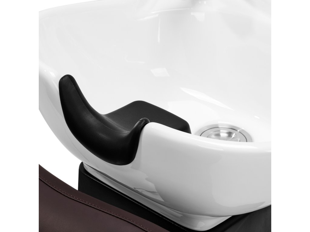 Hĺbka keramického umývadla v odtieňoch bielej farby umožňuje pohodlné a efektívne vykonávanie širokej škály kaderníckych služieb, čím sa zabráni nadmernému rozstrekovaniu vody a produktov používaných pri ošetrení. Vďaka použitému materiálu je umývadlo trvanlivé, odolné voči zmene farby a poškriabaniu a veľmi ľahko sa udržiava v čistote. Správne profilovaný golier zabezpečuje pohodlie pri umývaní vlasov. Použitie špeciálnej podpery v miske zaručuje dostatočnú oporu hlavy, aby jej váha nespočívala na krku. Inovatívne riešenie zabraňuje napätiu a nepohodliu v oblasti krku a zabezpečuje vysoký komfort aj počas dlhých procedúr. Navyše vďaka pohodlnému čiernemu plastovému krytu zákazník nepocíti nepríjemnosť studeného keramického povrchu.