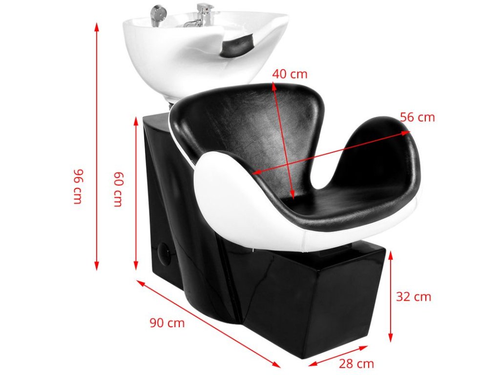 - stabilný, mimoriadne pohodlný, pevne postavený. Vďaka modernému dizajnu je krásnym doplnkom vybavenie moderného kaderníckeho salónu. Sedačka s jednoduchým tvarom, vyrobená z vysoko kvalitnej ekokože s jednoduchou údržbou. Silikónová podložka hlavy stabilizuje hlavu zákazníka a umožňuje pohodlné umiestnenie na podložku. Biela umývacia misa s možnosťou nastavenia jej sklonu. Čierna, biela farba