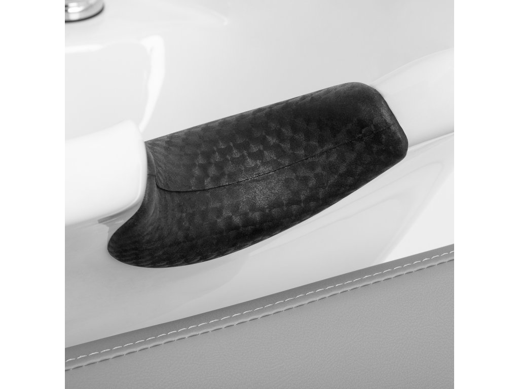 Umývací box je vyrobený z najkvalitnejších materiálov a dokonale dokončený. Vieme, aké dôležité je pohodlie klienta počas ošetrenia, a preto špeciálny dizajn poskytuje klientovi pevnú podporu hlavy pri umývaní. Mäkké a mimoriadne pohodlné sedadlo je potiahnuté vysoko kvalitnou šedou ekokožou.