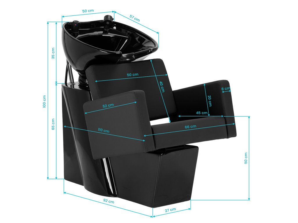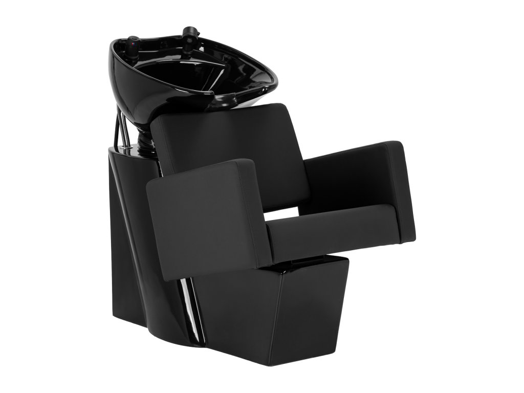 Súčasťou umývacieho boxu je hlboká keramická misa v čiernom prevedení, ktorá minimalizuje rozstrekovanie vody a vlasovej kozmetiky. Nastaviteľný sklon misy umožňuje individuálne prispôsobenie podľa výšky a polohy klienta, čím sa zvyšuje komfort počas umývania vlasov.