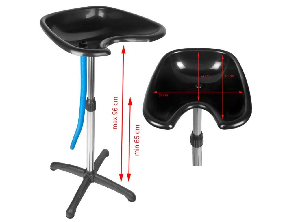 Umývací box je vyrobený z vysoko kvalitného plastu, ktorý je možné ľahko odplaviť od zvyškov farby a vlasov. Misa ostrekovača má navyše pohodlné nastavenie uhla sklonu pomocou skrutky a odtokového otvoru s hadicou na vypúšťanie vody.