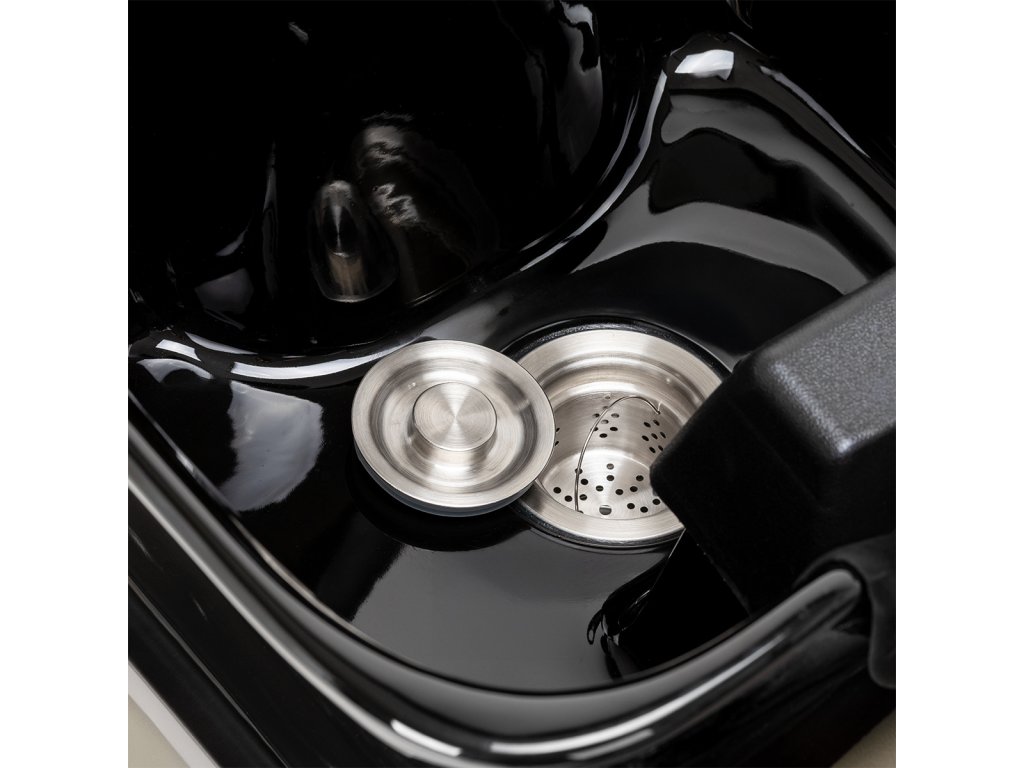 Súčasťou boxu je hlboká čierna keramická misa, ktorá minimalizuje rozstrekovanie vody a kozmetických prípravkov. Nastaviteľný sklon misy umožňuje jednoduché prispôsobenie polohy klientovi, čím zvyšuje komfort počas umývania, farbenia či ošetrujúcich procedúr. Misa je vysoko odolná voči chemikáliám, zafarbeniu aj poškriabaniu a jej hladký povrch zjednodušuje údržbu.