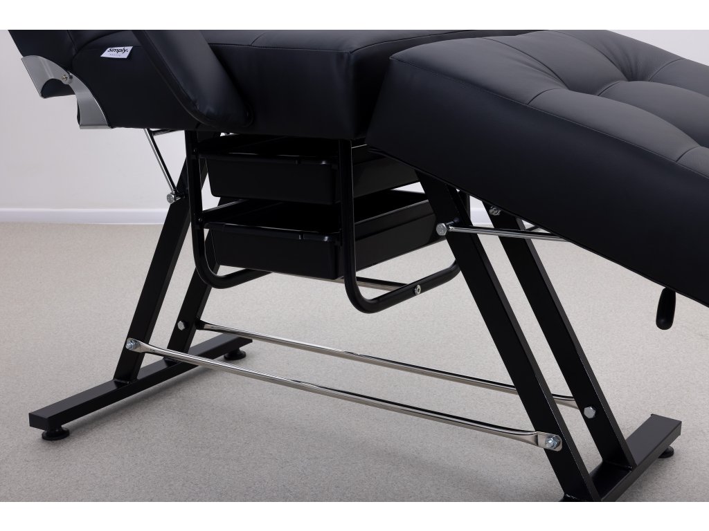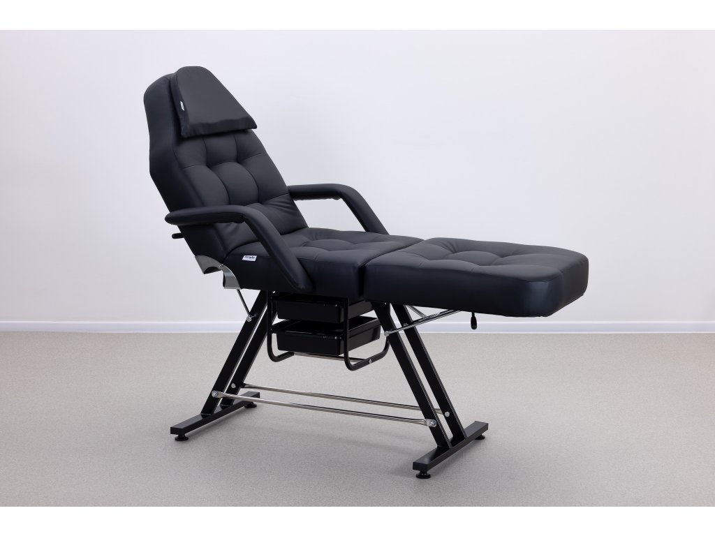 Kosmetické polohovatelné lehátko POLY je základné kozmetické lehátko s dvoma plastovými zásuvkami. Hodí sa do kozmetických, masážnych aj tetovacích salónov.