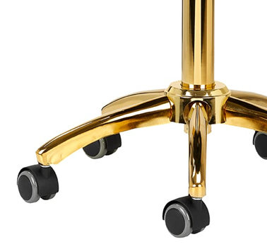 Päťhviezdičková základňa poskytuje stabilitu a pocit istoty aj pri dynamickejších pohyboch a častých zmenách polohy. Vybavená robustnými kolieskami poskytuje vysokú mobilitu, vďaka ktorej sa môžete voľne pohybovať po obývačke alebo pracovni. Čalúnenie zo syntetickej kože v odtieňoch bielej farby, ktoré je nielen odolné, ale sa aj ľahko udržiava v čistote. Estetické lemy a prešívanie mu dodávajú jedinečný vzhľad, zatiaľ čo zlaté ozdobné prvky mu dodávajú luxusný nádych, ktorý upúta pozornosť. Jedinečná kombinácia elegancie a pohodlia robí zo stoličky nepostrádateľný nástroj pre každého profesionála.
