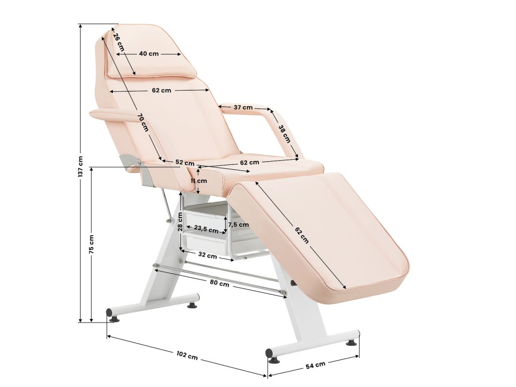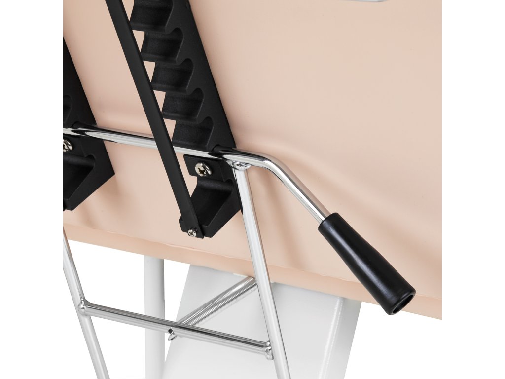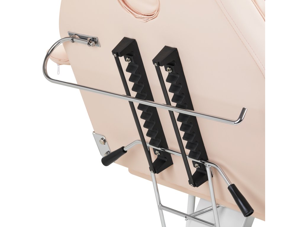 Špeciálny mechanizmus umožňuje postupné nastavenie uhla sklonu opierky nôh a operadla. Pomocou páčky môžete ľubovoľne nastaviť polohu stoličky. To umožňuje optimálne prispôsobenie individuálnym potrebám, správnu a pohodlnú liečbu a vysoký komfort. Stoličku možno rozložiť do polohy ležmo, čo výrazne zvyšuje jej funkčnosť. To umožňuje voľne vykonávať širokú škálu ošetrení vrátane kozmetiky, fyzioterapie a tetovania.
