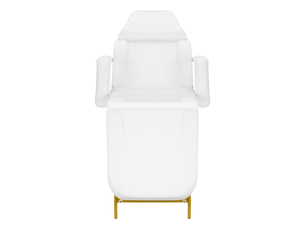 Kovový rám – vďaka svojej polomatnej povrchovej úprave v odtieňoch starého zlata a aerodynamickým nohám – vyzerá elegantne a nezaberá veľa miesta. Základňa stoličky má konštantnú výšku, takže sedadlo je v konštantnej výške, čo by malo zabezpečiť pohodlie pri používaní. Stolička je vyplnená penou a potiahnutá imitáciou kože v odtieňoch bielej. Vďaka použitiu tohto materiálu je zariadenie pohodlné na používanie, odolné voči vlhkosti a ľahko sa čistí. Správne profilované okraje dodávajú sedadlu ergonomický tvar. Jednoduchý dizajn a klasické farby umožňujú, aby sa hodila do každého interiéru.