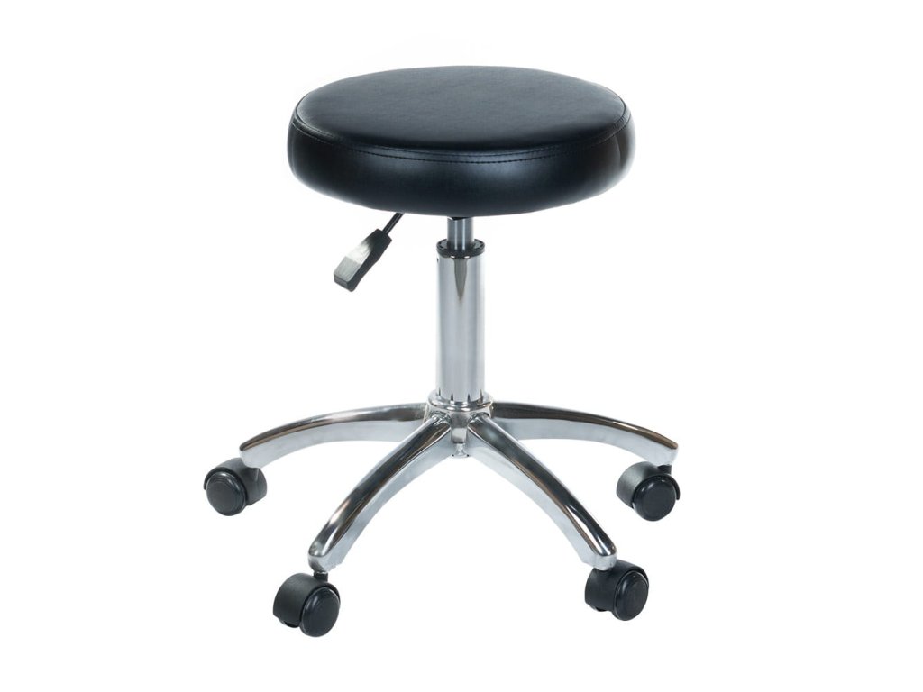 Kozmetická stolička BD-9920 má hydraulický mechanizmus nastavenia výšky a ľahko čistiteľné čalúnenie z vysoko kvalitnej ekologickej kože. Mobilitu zaisťuje päť kolies.