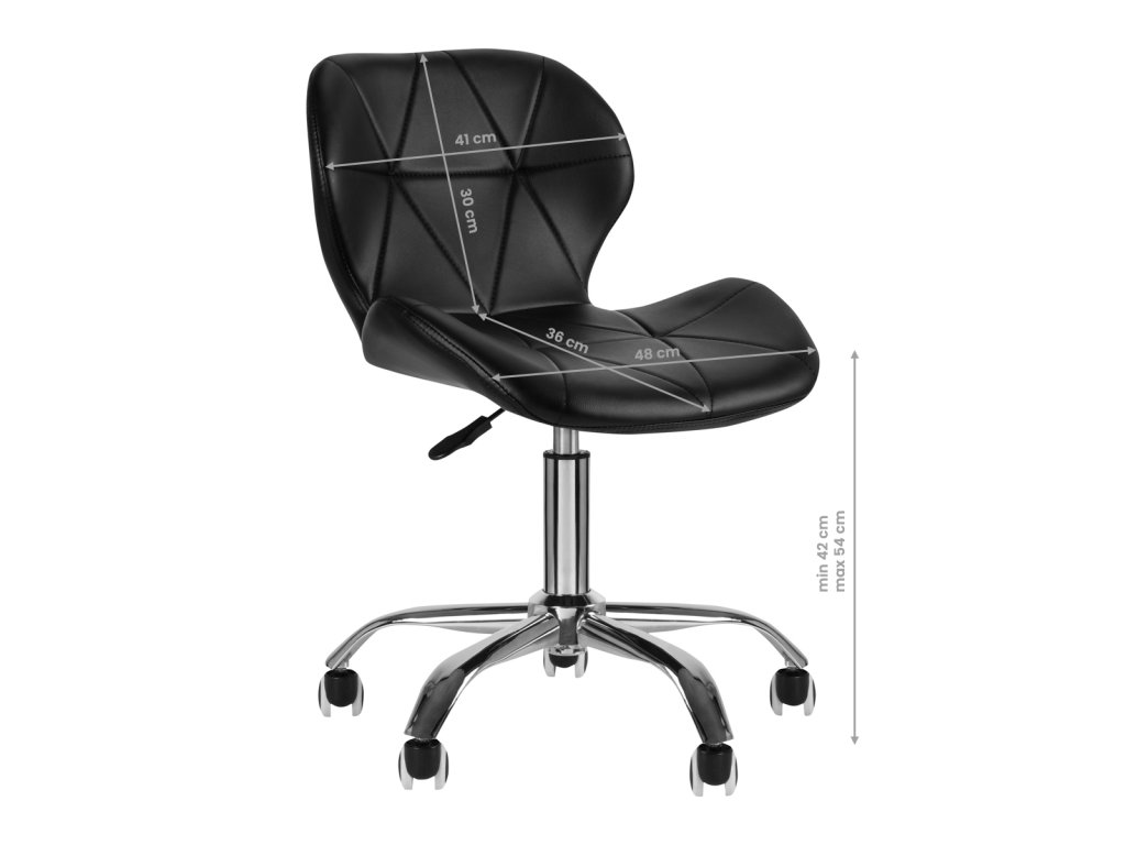 Veľmi pohodlná kozmetická stolička moderného vzhľadu. Kvalitné ekokože zaručia ľahšiu starostlivosť o nábytok. Sedačka je nastaviteľná hore a dole. Gumové kolieska.