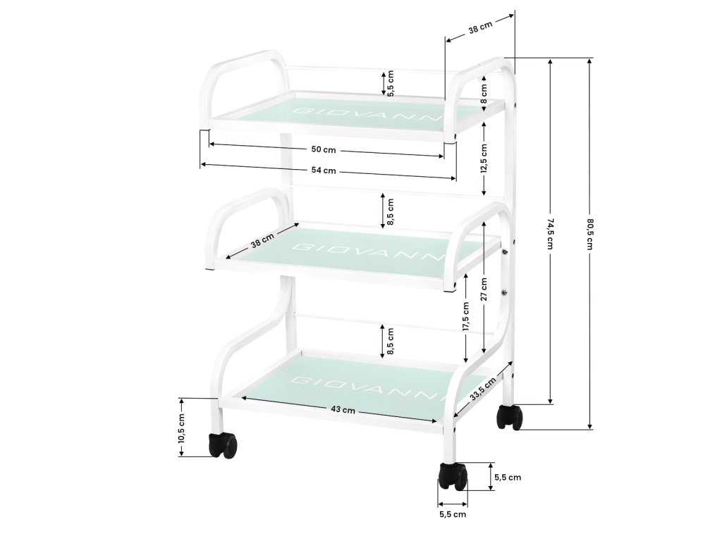s kolieskami. Má tri sklenené police s vyrytým logom GIOVANNI.
