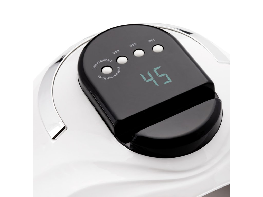 Najnovšia generácia profesionálnej UV/LED lampy, ktorá rýchlo a rovnomerne vytvrdzuje všetky gély, hybridné laky a ďalšie svetlom tuhnúce prípravky vďaka použitiu duálnej LED technológie. Vyžaruje biele svetlo, ktoré neunavuje váš zrak. Lampa Praktik má energeticky úsporný svetelný zdroj s vysokým výkonom a duálnou vlnovou dĺžkou 365nm a 405nm. Navyše 42 LED, ktoré dávajú celkový maximálny výkon 168W! Lampa má vstavaný pohybový senzor, časovač 10,30, 60 a 90 sekúnd a po aktivácii senzora svieti nepretržite 120 sekúnd. 120 sekúnd „Režim nízkej teploty“ je režim, v ktorom sa výkon lampy postupne zvyšuje každých 30 sekúnd. Znižuje pocit pálenia pri aplikácii stavebných gélov. Veľký elektronický displej uľahčuje ovládanie času.