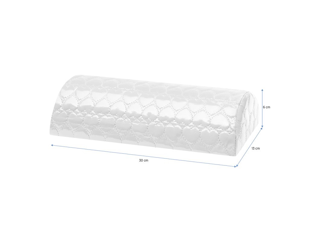 Tento praktický a profesionálny vankúš na ruke je čalúnený materiálom pripomínajúcim kožu s prešívanými srdiečkami, výplň vankúša tvorí pena so špeciálnou tvrdosťou. Materiál pripomínajúci kožu sa veľmi ľahko čistí, čo umožňuje udržovať ho v dokonalej čistote, lak na nechty sa na materiál nelepí.