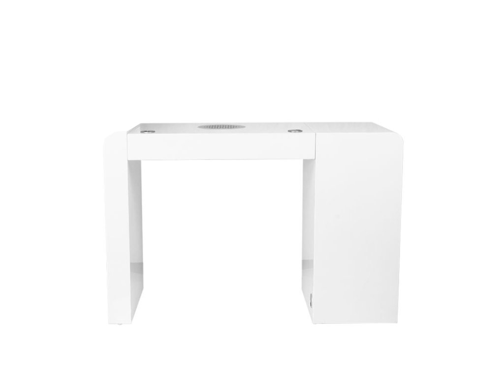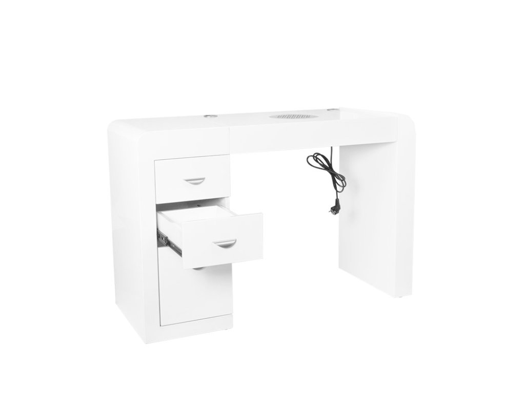 Kozmetický stôl s absorbérom - veľmi funkčný kus nábytku pre kozmetické salóny, ktorý kombinuje tri funkcie: stôl, absorbér prachu a skriňa so zásuvkami. Kus nábytku, ktorý dokonale ladí s vybavením moderných izieb. Nábytok bol špeciálne navrhnutý tak, aby čo najviac uľahčoval prácu a obmedzoval problém s vyčnievajúcimi káblami (od lámp, frézok, absorbérov atď.):