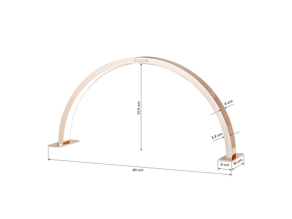 Ošetřovací lampa Glow Arche II s jedinečným obloukovým tvarem poskytuje vynikající osvětlení ošetřované oblasti při službách vyžadujících přesnost, jako je například úprava nehtů. Je ideální pro specializované kliniky, kde má správné světlo významný vliv na kvalitu ošetření. Zvláště důležité bude při manikérských službách, stejně jako při kosmetických ošetřeních, prodlužování řas, tetování nebo permanentním make-upu. Hodí se také pro pořizování fotografií nebo videí účinků služeb.