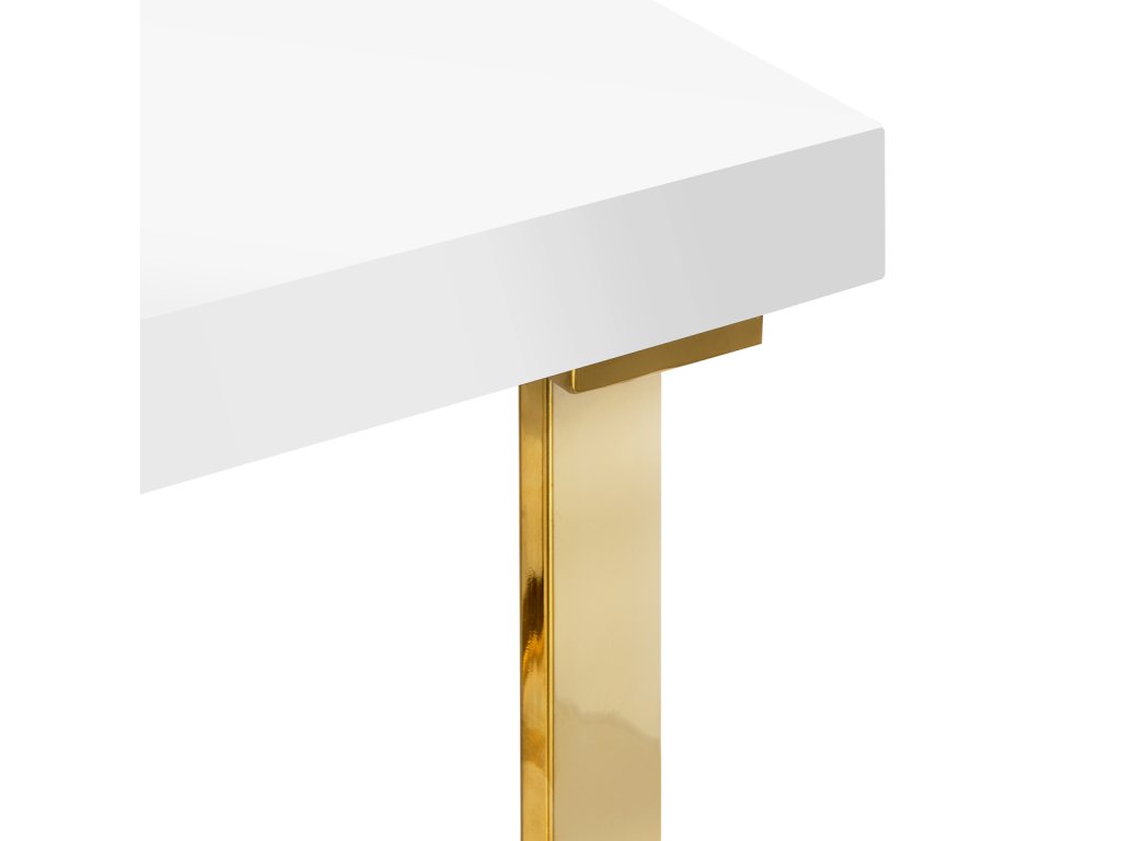 Biela vrchná doska s vysokým leskom a geometrické čierne nohy jej dodávajú ľahký a moderný charakter. Vďaka svojmu ľahkému tvaru sa stôl dobre hodí do intímnych a priestranných interiérov a podčiarkne ich exkluzívny charakter.