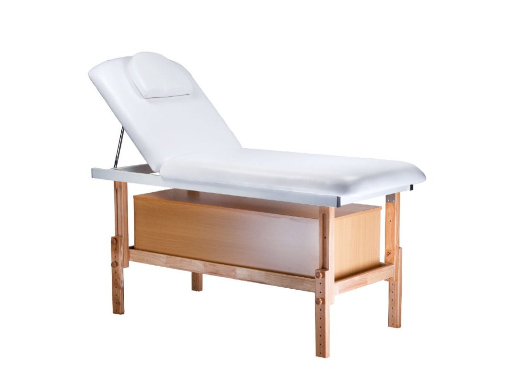 Nastaviteľná výška zaisťuje ergonómiu práce a priestranný úložný priestor umožňuje mať kozmetológom všetko potrebné po ruke.