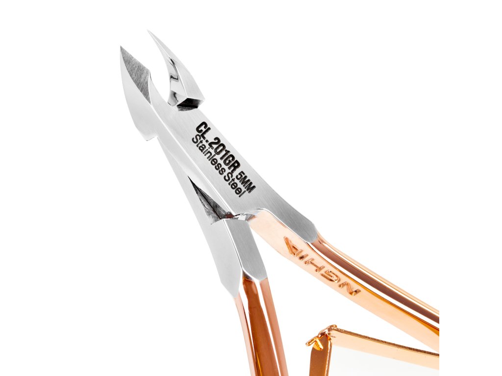 Vďaka svojmu tvaru a veľkosti ramien kliešte dokonale padnú do ruky a zabezpečujú pohodlie pri používaní. Praktická dvojitá pružina spájajúca ramená zaisťuje vynikajúci cit, stabilitu a presnosť strihania. Leštená povrchová úprava v odtieňoch ružového zlata im dodáva elegantný vzhľad a vyznačujú sa aj vysokou odolnosťou a jednoduchou údržbou. Vďaka tomu sú ideálnym nástrojom pre profesionálov aj pre tých, ktorí sa radi starajú o svoje nechty doma.