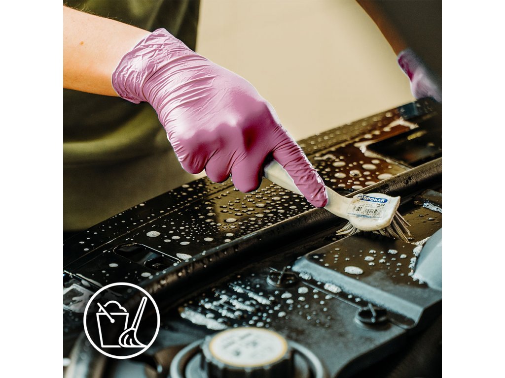 Rukavice nie sú vhodné na kontakt s veľmi horúcimi predmetmi. Pri používaní rukavíc dbajte na zvýšenú opatrnosť pri manipulácii s ostrými predmetmi. Nitrilové rukavice majú zvýšenú odolnosť voči chemickým rizikám. Rukavice by sa mali nosiť na suchých rukách. Po použití rukavíc vykonajte hygienu rúk pomocou alkoholového dezinfekčného prostriedku na ruky alebo si umyte ruky mydlom a vodou.