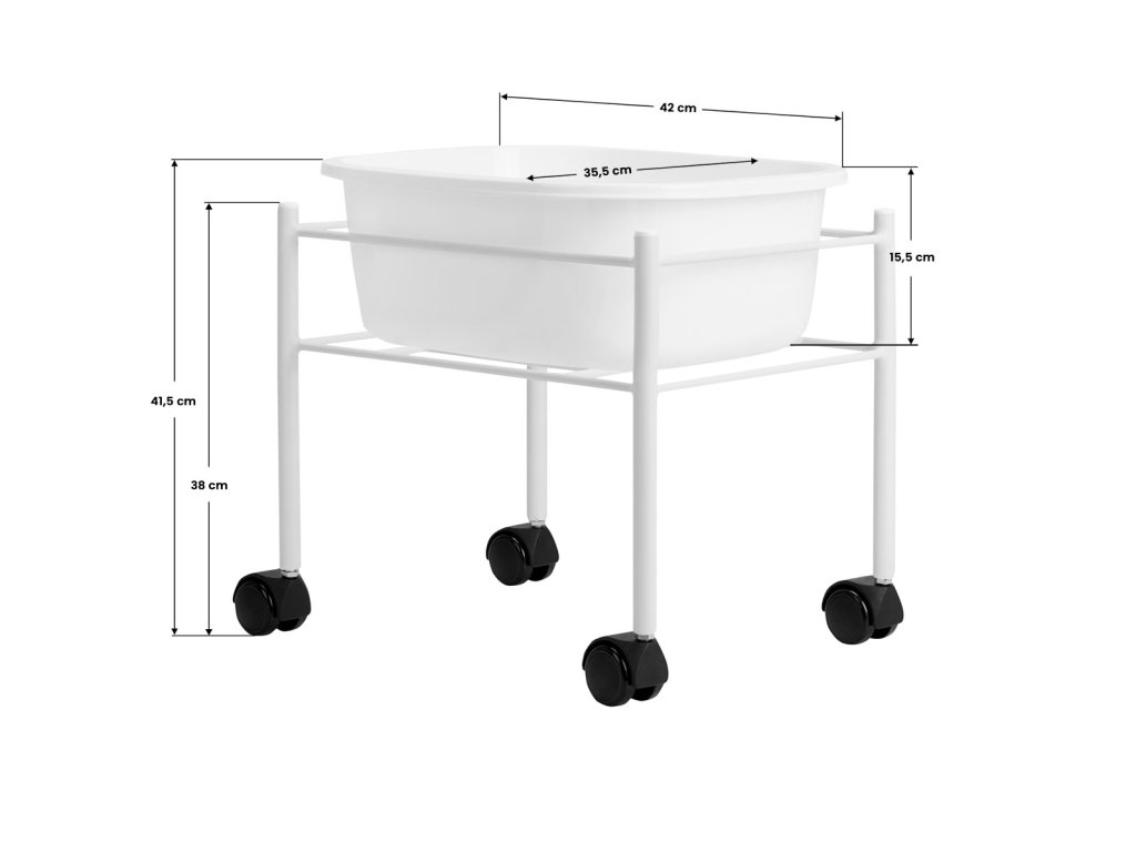 Vanička na pedikúru slúži na namočenie nôh pred pedikúru. Je to veľmi výhodné pre klienta a pedikérku. Silná a stabilná oceľová konštrukcia. Inštalované kolieska umožňujú ľahký pohyb sprchovej vaničky. Väčšina mís sa hodí aj pre vírivé misy. Technické údaje: - Výška 350 mm - Šírka 350 mm - Dĺžka 420 mm - Objem misy ~ 5 l - Čistá hmotnosť s miskou / bez misky 2,1 kg / 1,8 kg