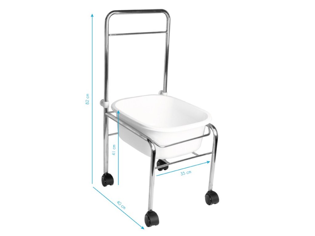 pedikúru sa používa na namočenie nôh pred ošetrením pedikúrou. Je to veľmi výhodné pre klienta a pedikérku. Silná a stabilná oceľová konštrukcia. Inštalované kolieska umožňujú ľahký pohyb sprchovej vaničky. Väčšina mís sa hodí aj pre vírivé misy.