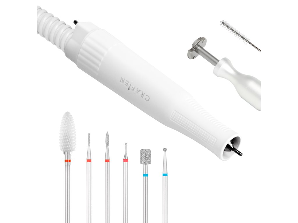 Praktické příslušenství obsažené v sadě efektivně usnadňuje práci. Přesná hlavice s absorbérem a náhradními filtračními sáčky zajišťují bezpečné použití, chrání před vdechnutím škodlivých patogenů. , které vám umožní pohodlné provádění různých pedikérských ošetření a, který usnadňuje čištění. Různé tvary, materiály a odstupňování fréz vám umožní vybrat si ten správný nástroj pro aktuálně prováděnou službu a opracovávané místo. Přiložené nástroje pro čištění hlavy a demontáž fréz zajišťují snadnou údržbu zařízení v dobrém stavu a usnadňují používání.