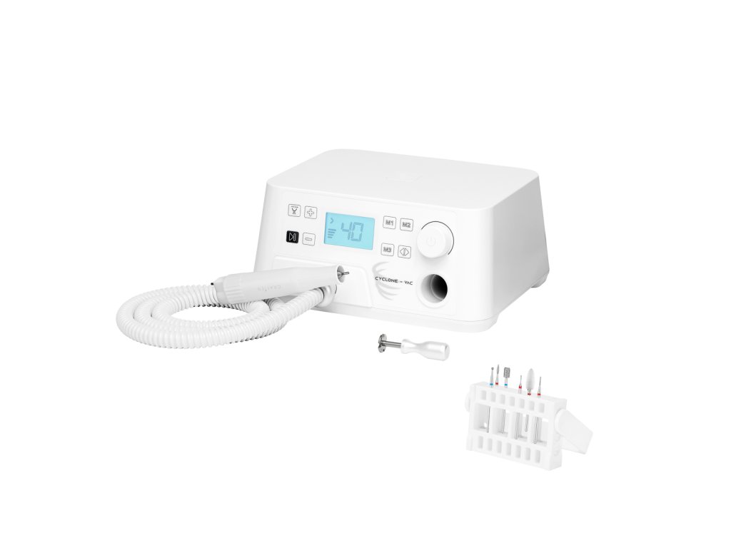 Špičková podiatrická frézka s absorbérem Saeyang Marathon Cyclone-Vac je specializované zařízení, které umožňuje udržovat vysoké hygienické standardy v kanceláři a účinně chránit zdraví lidí provádějících služby a klientů. Profesionální frézka je určena pro pedikúru, zejména suché ošetřovací procedury prováděné v podiatrii , ale dobře poslouží i při manikúře. Účinná hlavice s absorbérem a intuitivní ovládání výrazně zlepšují práci podiatra a usnadňují provádění široké škály ošetře