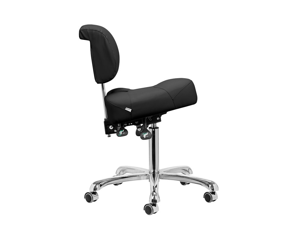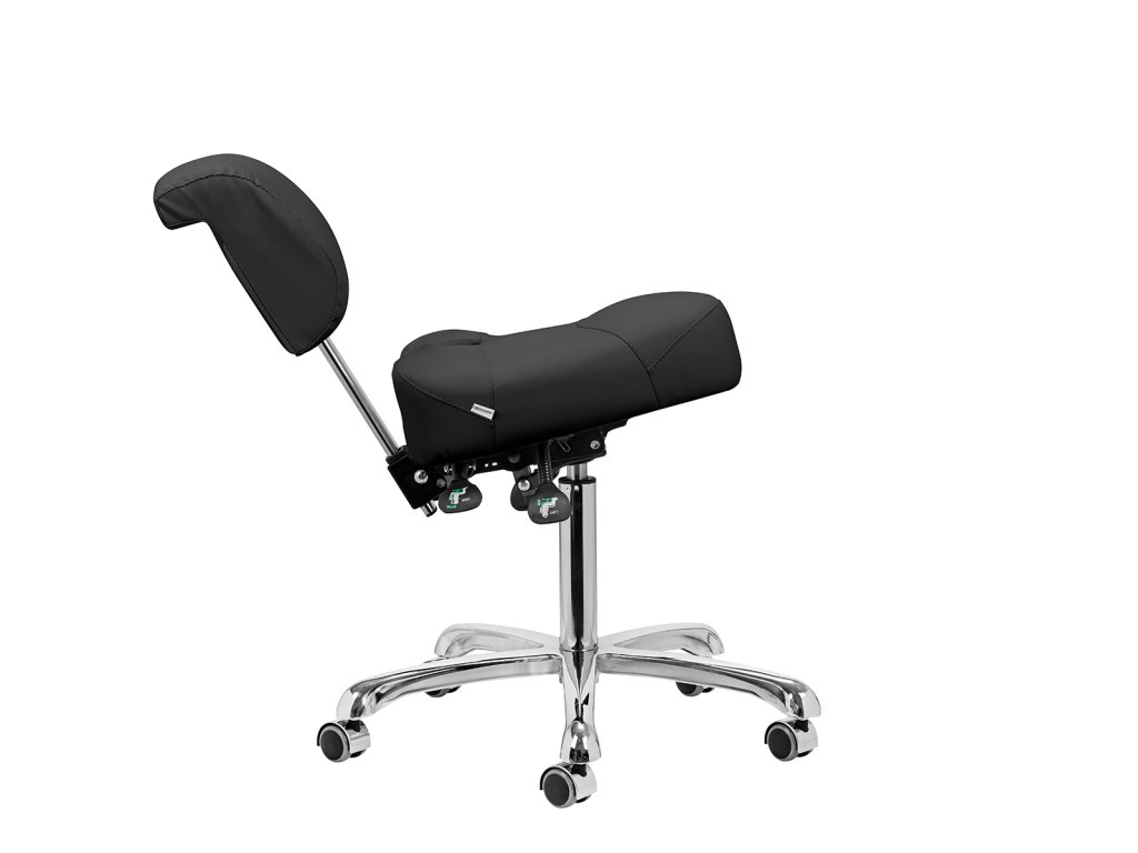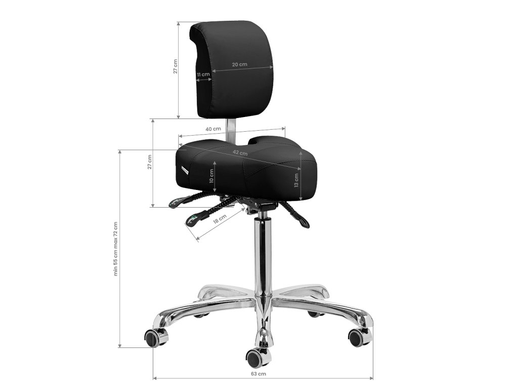 Nastaviteľná výška od 55 do 72 cm vám umožní správne sa polohovať pri vykonávaní služieb. Dokonale tvarované nastaviteľné operadlo poskytuje optimálnu bedrovú oporu, aby sa minimalizovala únava počas dlhodobej práce. Vďaka plne otočnému mechanizmu je práca efektívnejšia a pohodlnejšia. Stolička je vybavená aj funkciou uzamykateľnej kolísky, ktorá umožňuje ergonomické polohovanie tela. Sedadlo umožňuje nastavenie sklonu a výšky pomocou plynových valcov a výšku operadla možno nastaviť ručne, aby sa zabezpečilo úplné pohodlie.