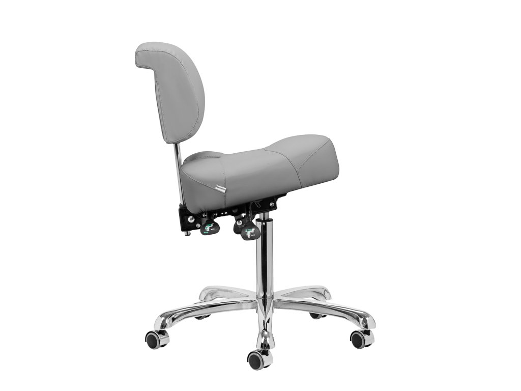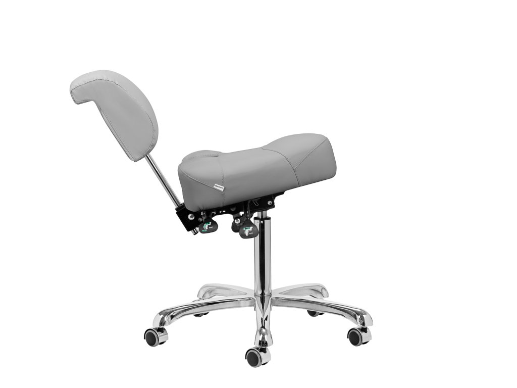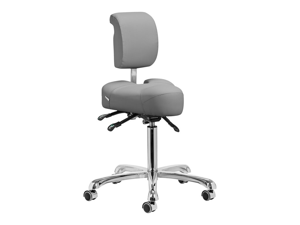 Nastaviteľná výška od 55 do 72 cm vám umožní správne sa polohovať pri vykonávaní služieb. Dokonale tvarované nastaviteľné operadlo poskytuje optimálnu bedrovú oporu, aby sa minimalizovala únava počas dlhodobej práce. Vďaka plne otočnému mechanizmu je práca efektívnejšia a pohodlnejšia. Stolička je vybavená aj funkciou uzamykateľnej kolísky, ktorá umožňuje ergonomické polohovanie tela. Sedadlo umožňuje nastavenie sklonu a výšky pomocou plynových valcov a výšku operadla možno nastaviť ručne, aby sa zabezpečilo úplné pohodlie.