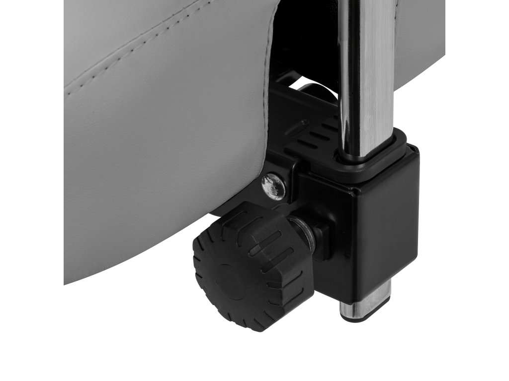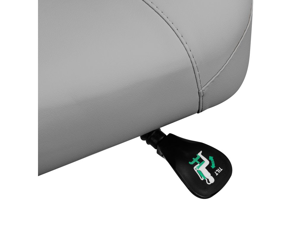 Päťbodová pevná základňa zaisťuje výnimočnú stabilitu stoličky aj pri intenzívnom používaní. Pogumované kolieska umožňujú ľahký a plynulý pohyb bez poškodenia podlahy. Stolička sa vyznačuje odolnosťou a stabilitou a jej čalúnenie z vysokokvalitnej imitácie kože v odtieňoch sivej farby je odolné voči vlhkosti a ľahko sa čistí, čo ešte zvyšuje komfort používania.