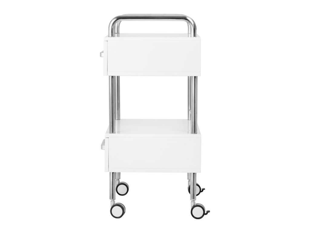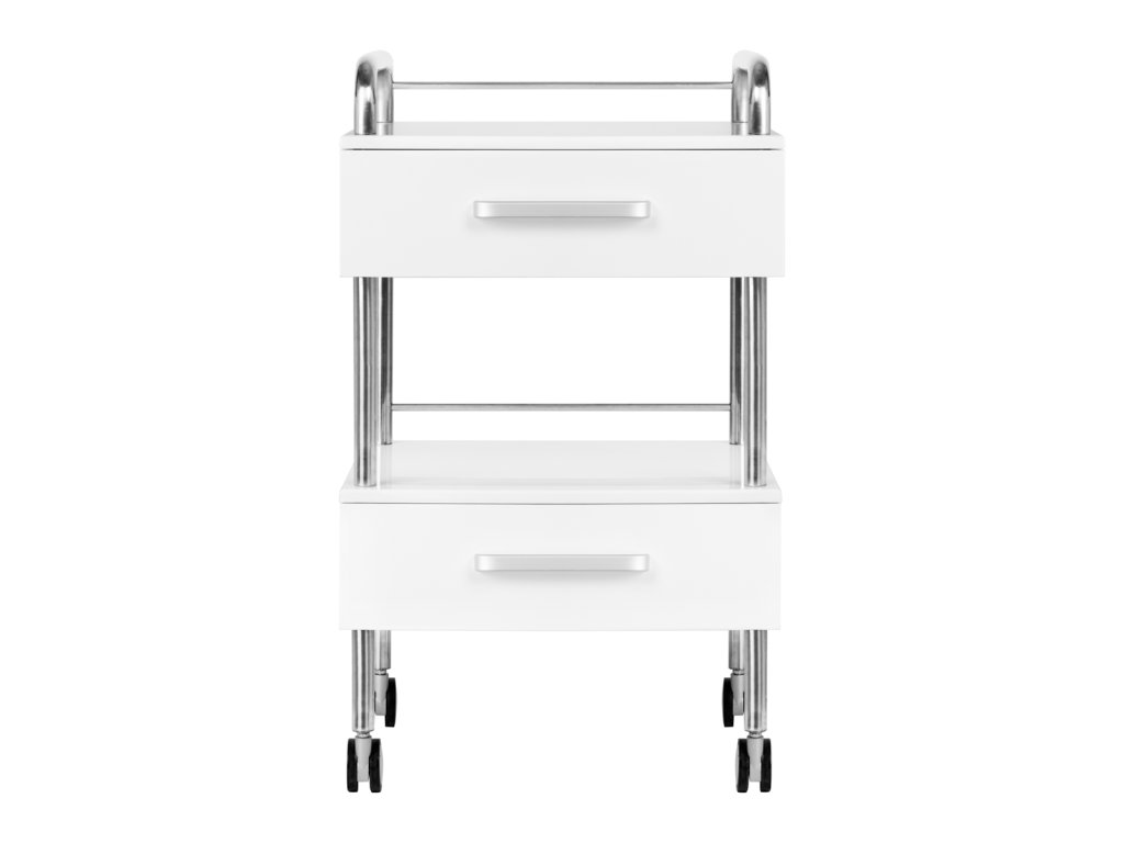 Kvalitný podiatrický pomocník je funkčný kozmetický kus nábytku na kolieskach. Vďaka svojej mobilite ho môžete prepravovať do iných ošetrovní. Asistent má dve zásuvky na náradie, príslušenstvo a policu na podologickú frézku alebo iné zariadenie.