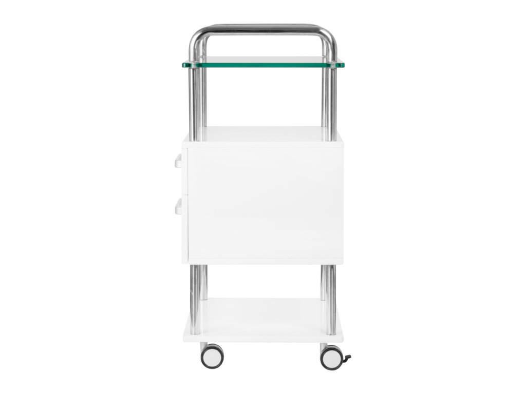 Kvalitný podiatrický pomocník je funkčný kozmetický kus nábytku na kolieskach. Vďaka svojej mobilite ho môžete prepravovať do iných ošetrovní. Asistent má sklenenú pracovnú dosku, dve zásuvky na náradie, príslušenstvo a policu na podologickú frézku alebo iné zariadenie.
