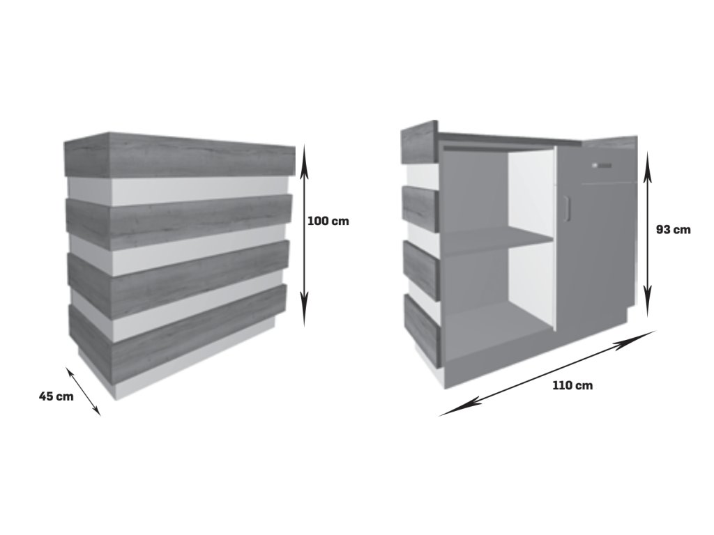 Recepčný stôl je k dispozícii len na objednávku, ale vyrobíme ho pre vás vo všetkých dekoroch nábytkových dosiek v našej ponuke.