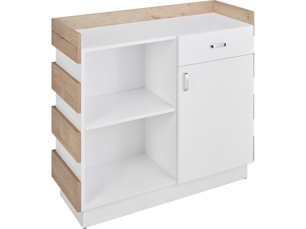 Vybavený zásuvkou, uzamykateľnou skrinkou a dvoma otvorenými policami