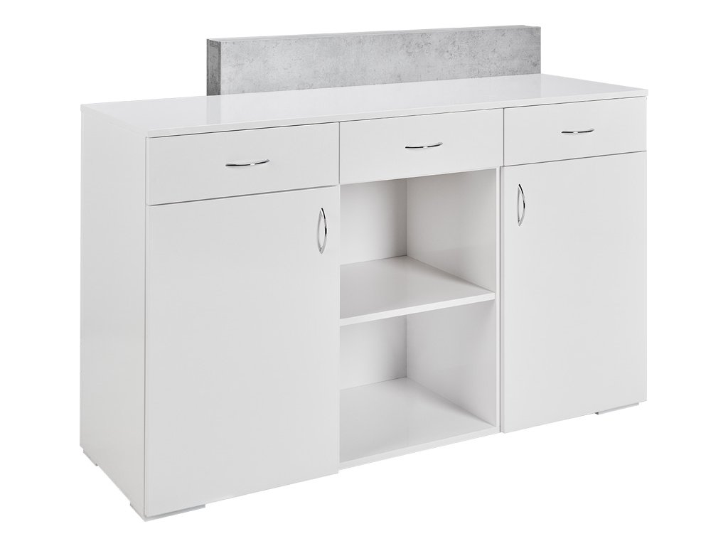 Vybavený tromi zásuvkami, dvoma uzamykateľnými skrinkami a dvoma otvorenými policami
