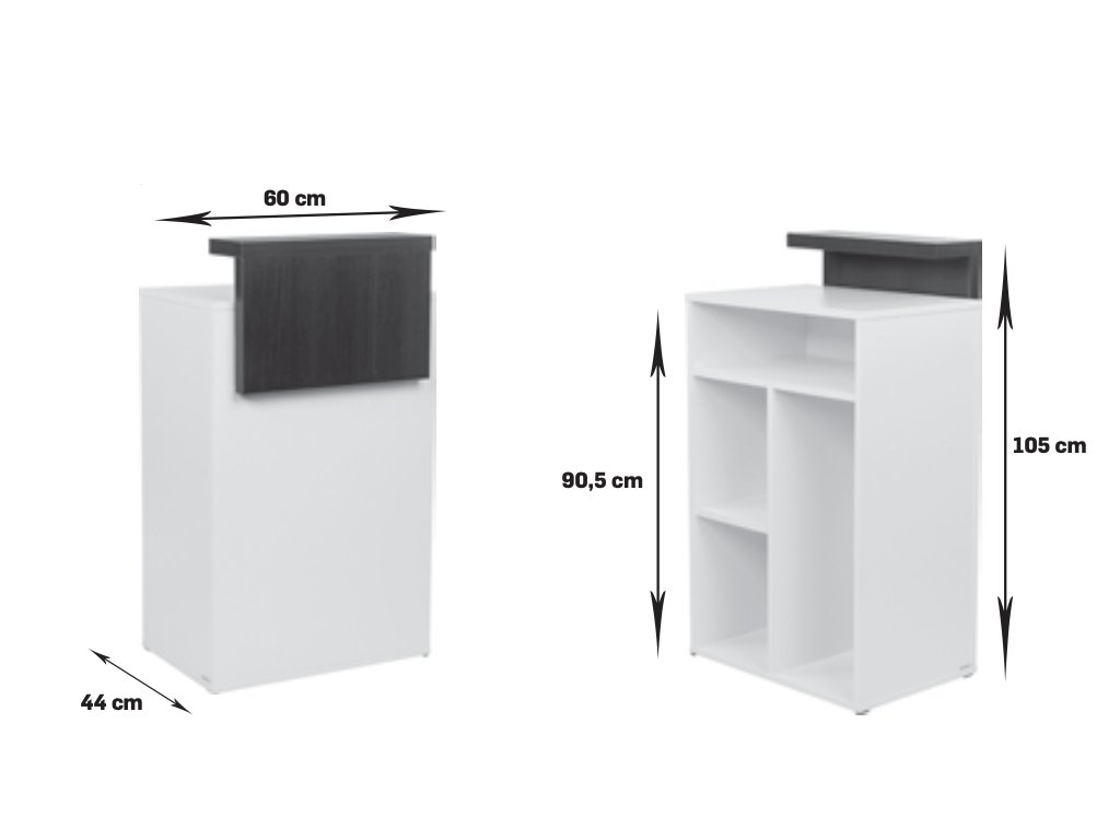 Zásoba je k dispozícii v bielej matnej nábytkovej doske s tmavým nadstavcom v prevedení wenge.