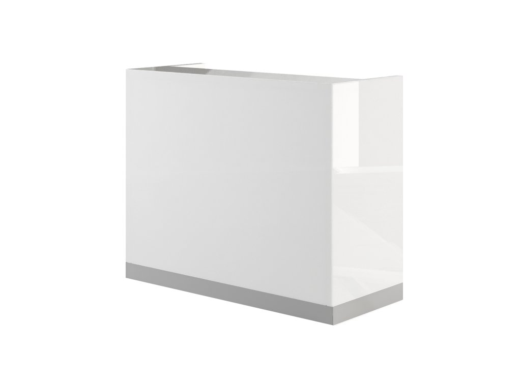 Recepčný pult Lacobel v elegantnej bielej farbe so šírkou 120 cm predstavuje výborné spojenie funkčnosti a dizajnu. Vďaka kvalitnému sklu Lacobel s lesklým povrchom a jemným zrkadlovým efektom sa tento model skvele hodí do moderných interiérov, kde zohráva nielen praktickú, ale aj estetickú úlohu.