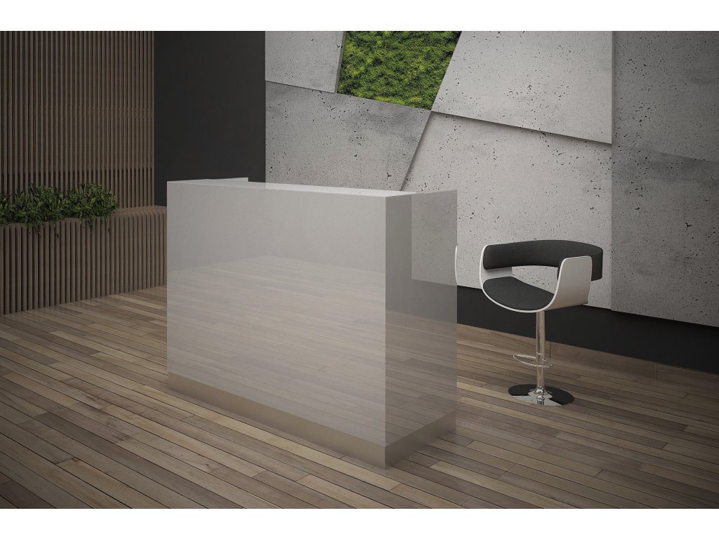 Recepčný pult Lacobel v sivej farbe predstavuje štýlový a praktický nábytok pre každé moderné pracovné prostredie. Vyrobený je z kvalitného skla Lacobel, ktoré má jemne zrkadlový lesk a hladký povrch. Tento pult pôsobí čisto, profesionálne a súčasne dodáva priestoru svetlosť a eleganciu.