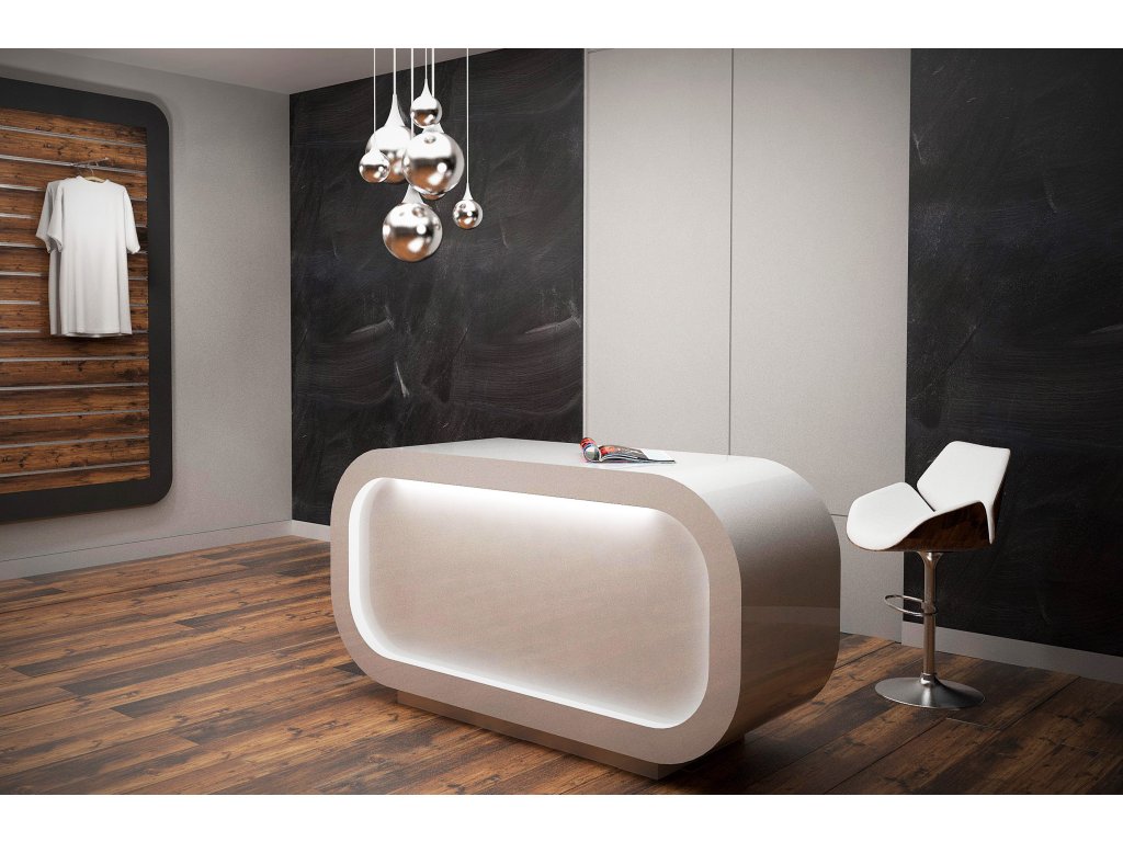 Recepčný pult MYDL je jedným z najelegantnejších pultov dostupných v ponuke našej spoločnosti. Jeho jednoduché a moderné tvary dodajú luxus každej miestnosti. Vďaka jasným farbám sa recepcia perfektne hodí do každého interiéru. Má charakteristický tvar pripomínajúci mydlo a malé osvetlené prvky, ktoré upútajú pozornosť zákazníkov. Ak máte záujem o veľkosti, dostupné farby alebo spôsob dodania pultu, odporúčame vám nás kontaktovať a odoslať otázky.