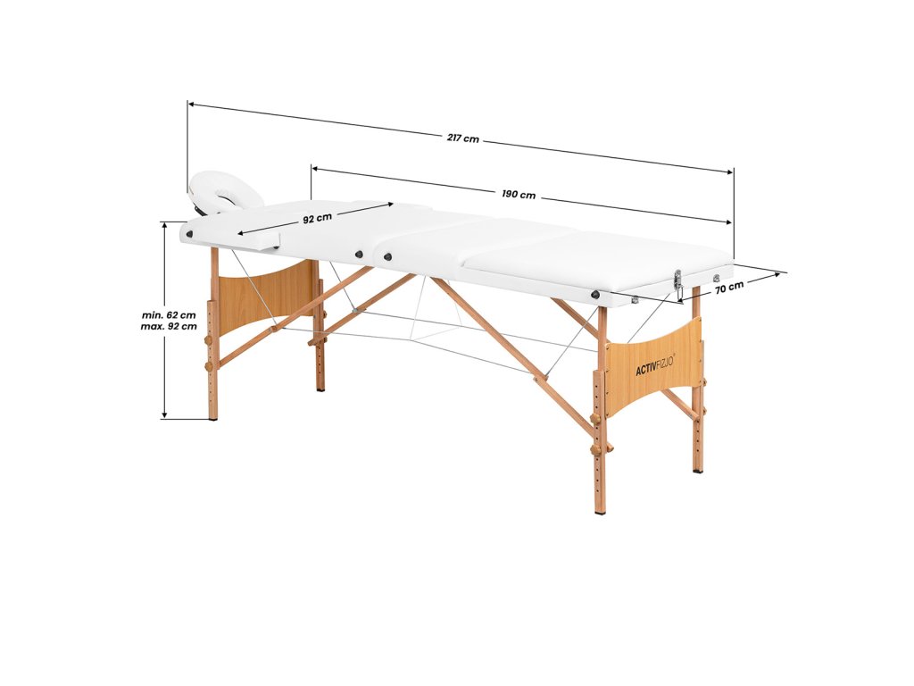 Skladacie masérske lehátko Activfyzio LUX 3 segmentové drevené - biele 190x70