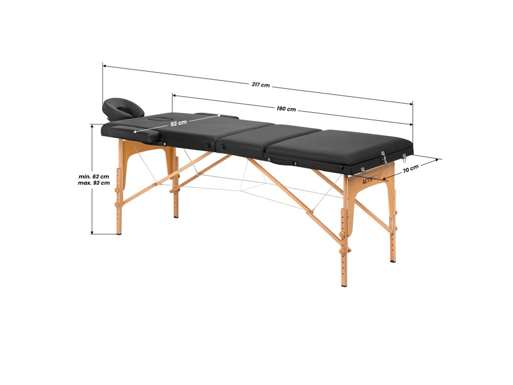 Skladacie masérske lehátko Activfyzio LUX 3 segmentové drevené - čierne 190x70