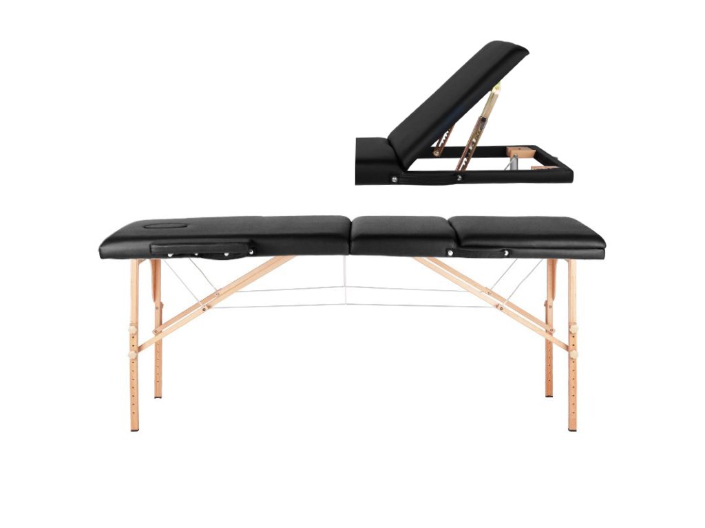 Skladacie masérske lehátko KOMFORT 3 drevené - čierne