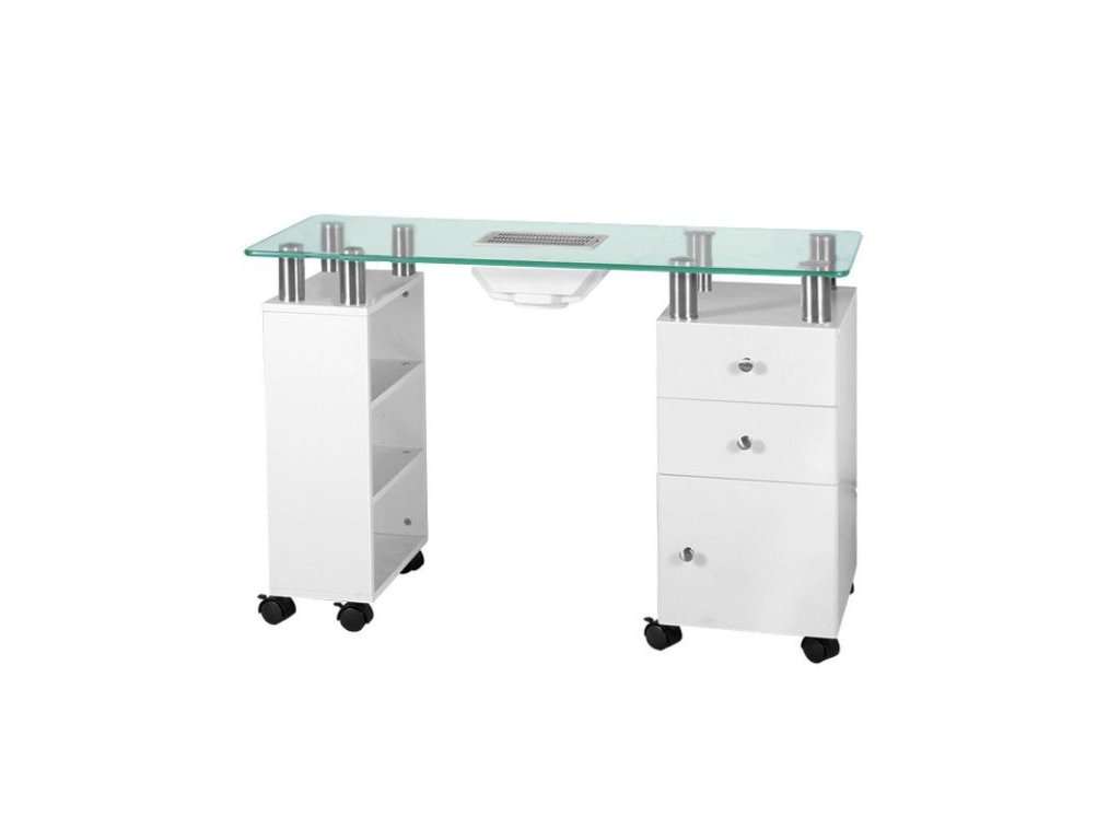 Sklenený manikúrne stôl 013B s odsávačkou prachu - biely