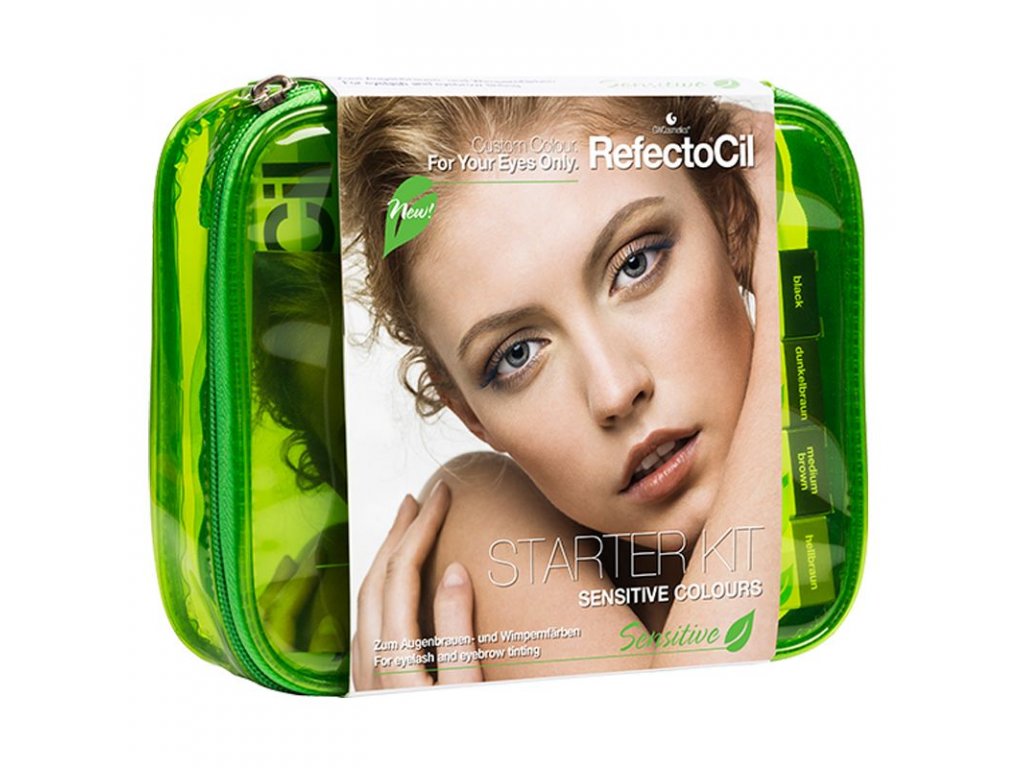 Profesionálna štartovacia sada pre farbenie obočia a rias Refectocil Starter Kit Sensitive je dokonalým riešením pre všetkých, ktorí sa chcú zoznámiť s produktmi Refectocil alebo začať dobrodružstvo farbením. Kozmetika RefectoCil Sensitive bola vyvinutá pre alergikov a osoby s extrémne citlivou pokožkou, u ktorých môže tradičné farbenie spôsobiť alergiu a podráždenie. Farby sú úplne bezpečné pre zdravie, pretože obsahujú iba rastlinné výťažky, vr. výťažok z rebríčka, gaštan, nechtík, zelený čaj a extrakt zo svetlice farbiarskej. Nový dvojkrokový aplikačný systém vám umožní získať nový odtieň obočia a rias iba za 3 minúty a sfarbenie je odolné voči rozmazaniu. Treba tiež zdôrazniť, že nezanecháva šmuhy ani iné nečistoty, takže vydrží až 6 týždňov.