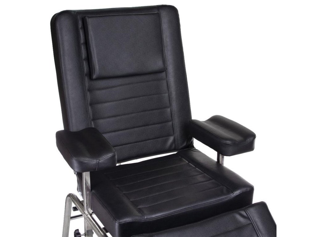 Ponúkame tetovacie kreslo s elegantným designom. Čalúnenie z vysoko kvalitnej ekologickej kože je k dispozícii v čiernej farbe. Sýto čierna nie je jedinou výhodou čalúnenie, ktoré je veľmi praktické a ľahko sa udržuje v čistote. Toto profesionálne vybavenie je veľmi funkčné: nastaviteľná výška podrúčiek, nastaviteľný uhol sedadla a uhol opierky nôh sú prednosťami tohto modelu. Investujte do najlepšieho vybavenia pre svoj kozmetický salón. Tetovacia stolička BD-3602 je dobrou voľbou!
