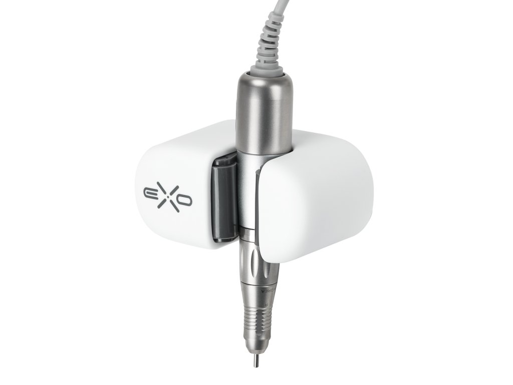 Univerzálny držiak EXO na zavesenie frézovacej hlavy v blízkosti pracovného miesta. Možno ho pripevniť na stenu, stôl alebo podiatrickú skrinku na najvhodnejšie miesto, aby bolo používanie zariadenia čo najefektívnejšie . Držiak chráni rukoväť pred náhodným pádom, čím sa znižuje pravdepodobnosť poškodenia . Vyrobený z odolného materiálu, zaručuje stabilitu a trvanlivosť. Rýchlu inštaláciu zabezpečuje špeciálna nálepka s montážnou páskou , ktorá je súčasťou súpravy. Výrobok zohľadňuje otázky hygieny práce - ľahko sa čistí a dezinfikuje. Držiak je vhodný pre väčšinu hlavíc dostupných na trhu