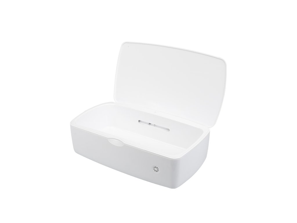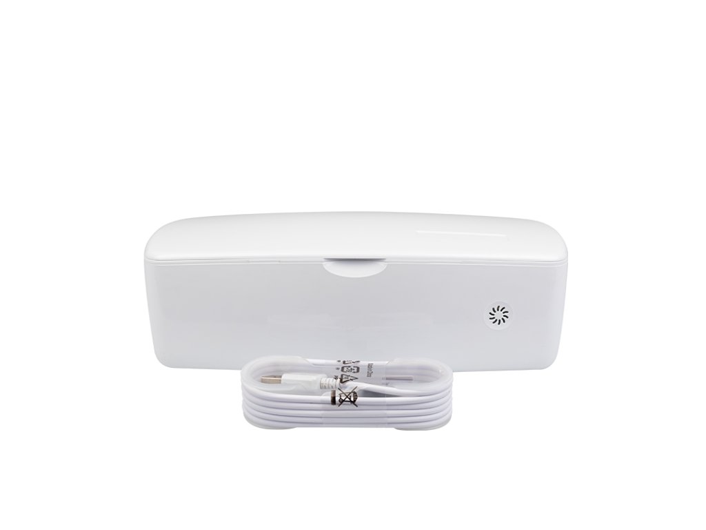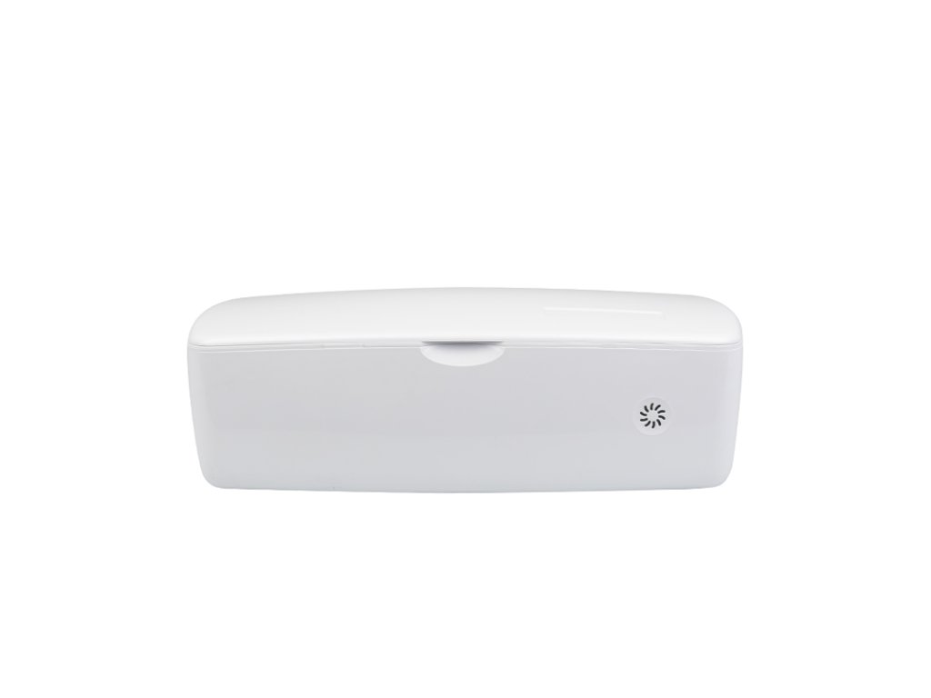 2. Otevřete horní kryt a vložte dezinfikovaný předmět. Stiskněte spínač, proces dezinfekce se spustí automaticky. Pokud je světlo modré, znamená to, že probíhá dezinfekce. Když se