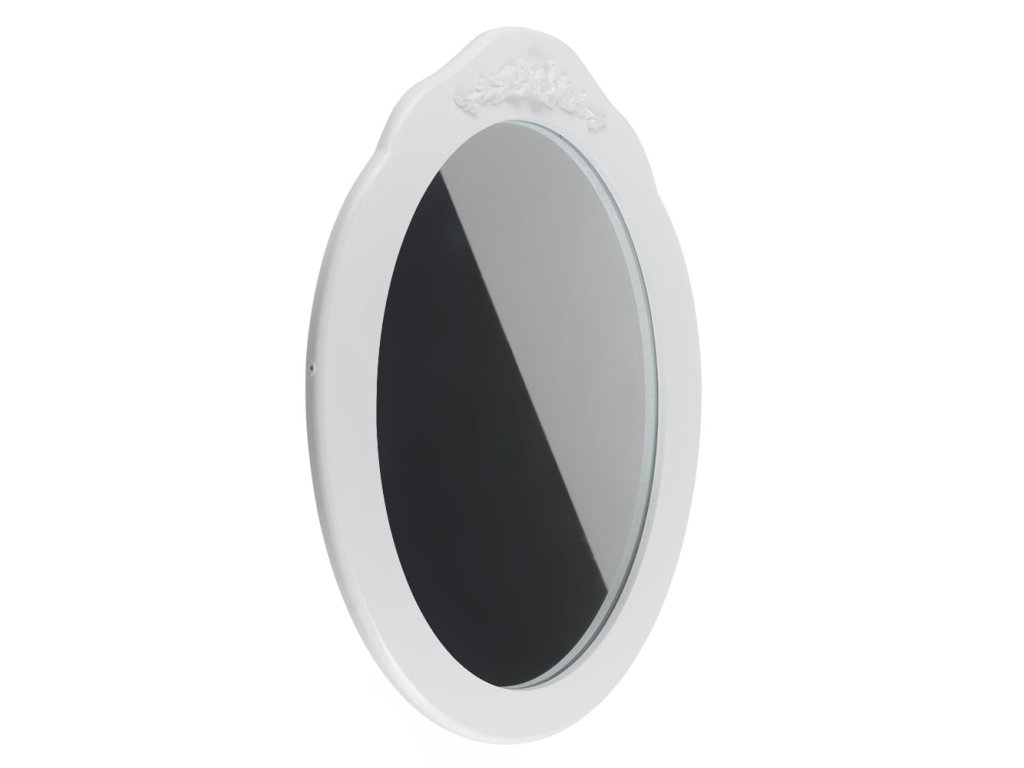 Toaletné zrkadlo MIRA/ELSA s dekoráciou na bielom ráme na zavesenie na stenu.